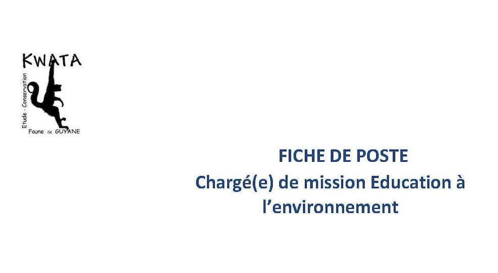 L'association Kwata recrute 1 CDD de 11 mois "Chargé(e) de mission Éducation à l'Environnement" à pourvoir le 01 février 2026.
