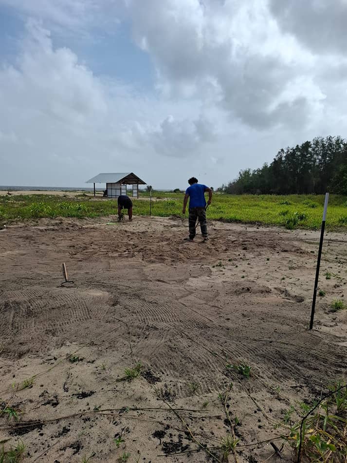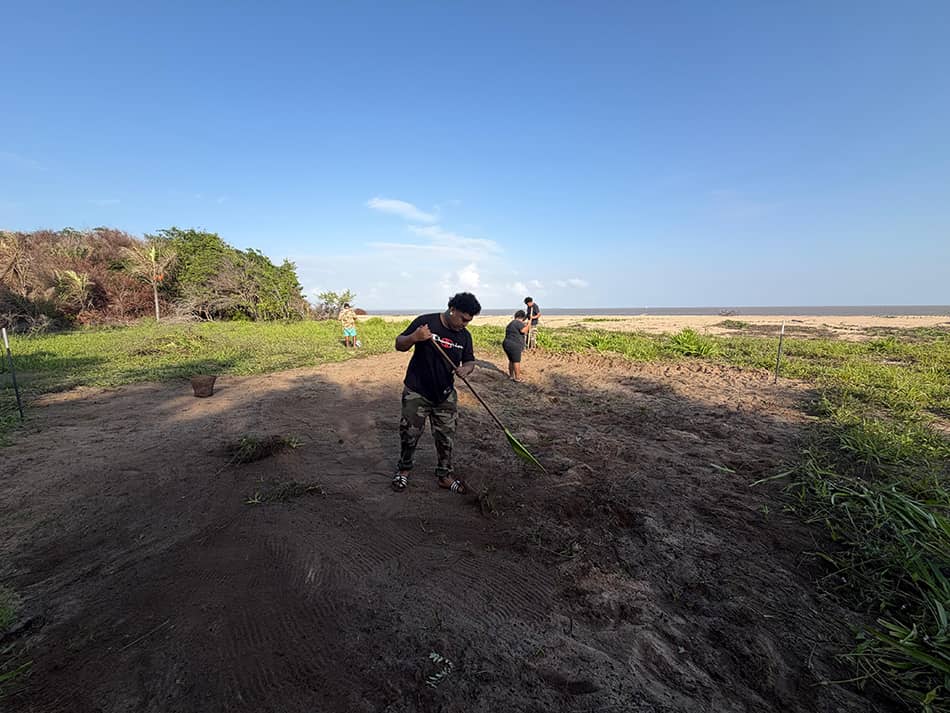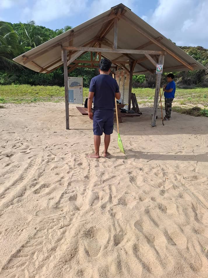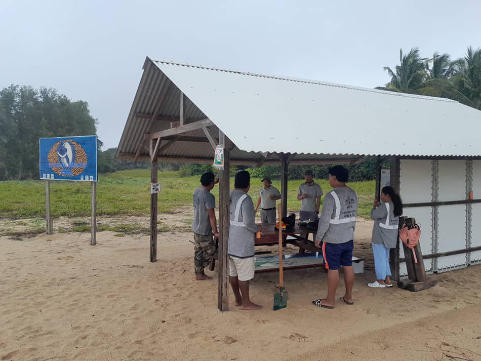 La zone protégée sur la plage a tout juste été reconstruite, avec l’équipe de la Réserve naturelle et même les pompiers de Mana venus prêter main forte. La signalétique a été refaite, le carbet nettoyé, les panneaux remis en place. Et surtout, l’équipe est là, prête pour les premiers tortues et les premiers visiteurs.
